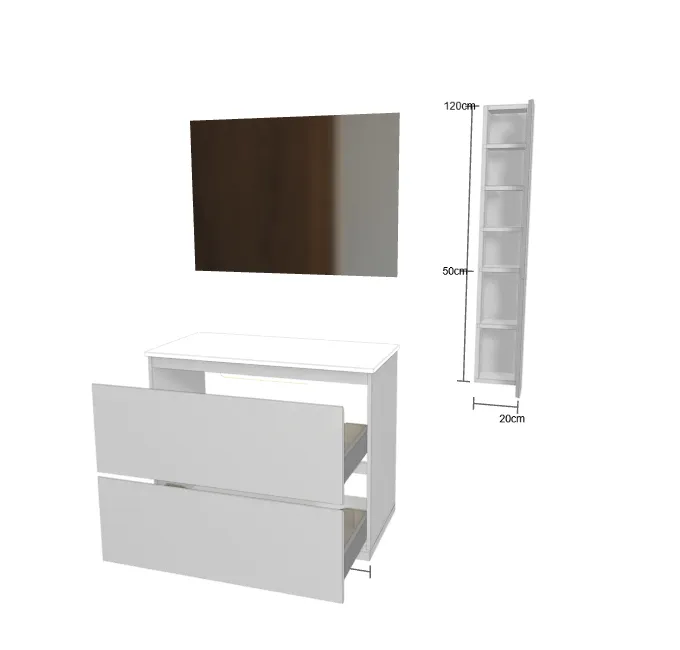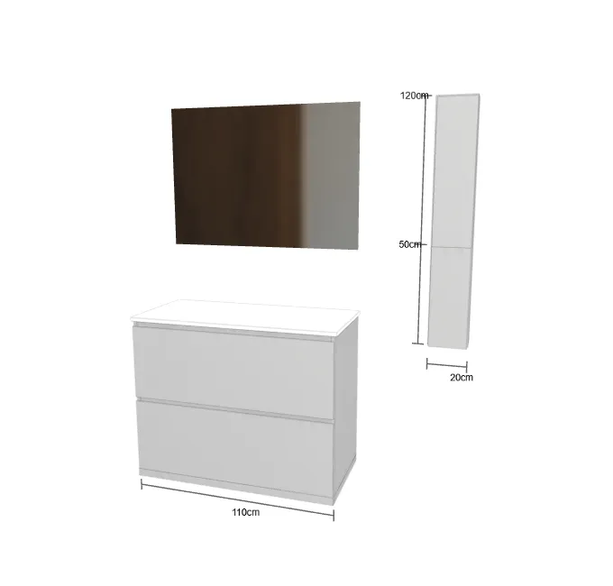 Largeur du meuble: Cm 110 Meuble libre avec espace sur les côtés Profondeur du meuble: Cm 51 Hauteur du meuble: Cm 80 - au sol Finition du meuble: Mat - RAL 7047 Type de poignée: Poignée A Matériau du plan lavabo: Tekhnos blanc Épaisseur du plan: 1.2 cm Type de vasque: Vasque intégrée Modèle de lavabo: Cubik B220 - tekhnos blanc Position du robinet ( Non inclus ): Robinet sur plan de toilette - avec perçage pour robinet Miroir: Miroir rectangulaire simple. Épaisseur : 2 cm., avec rétroéclairage H. cm 75 L. cm 110 Meuble murale de salle de bain: Premier: Largeur 20 cm - Hauteur 120 cm - profondeur 15 cm ![]() ![]() | |||||||